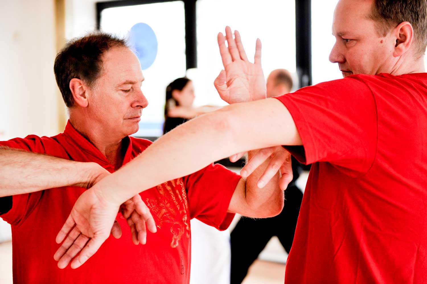 Im Gegensatz zu den meisten Kampfsportarten, in denen der Körperkontakt zum Gegner nicht permanent aufrecht erhalten wird, lernt man beim Wing Chun am Gegner „kleben zu bleiben“. Dies ist das Merkmal einer einmalig effektiven Kampfkunst.